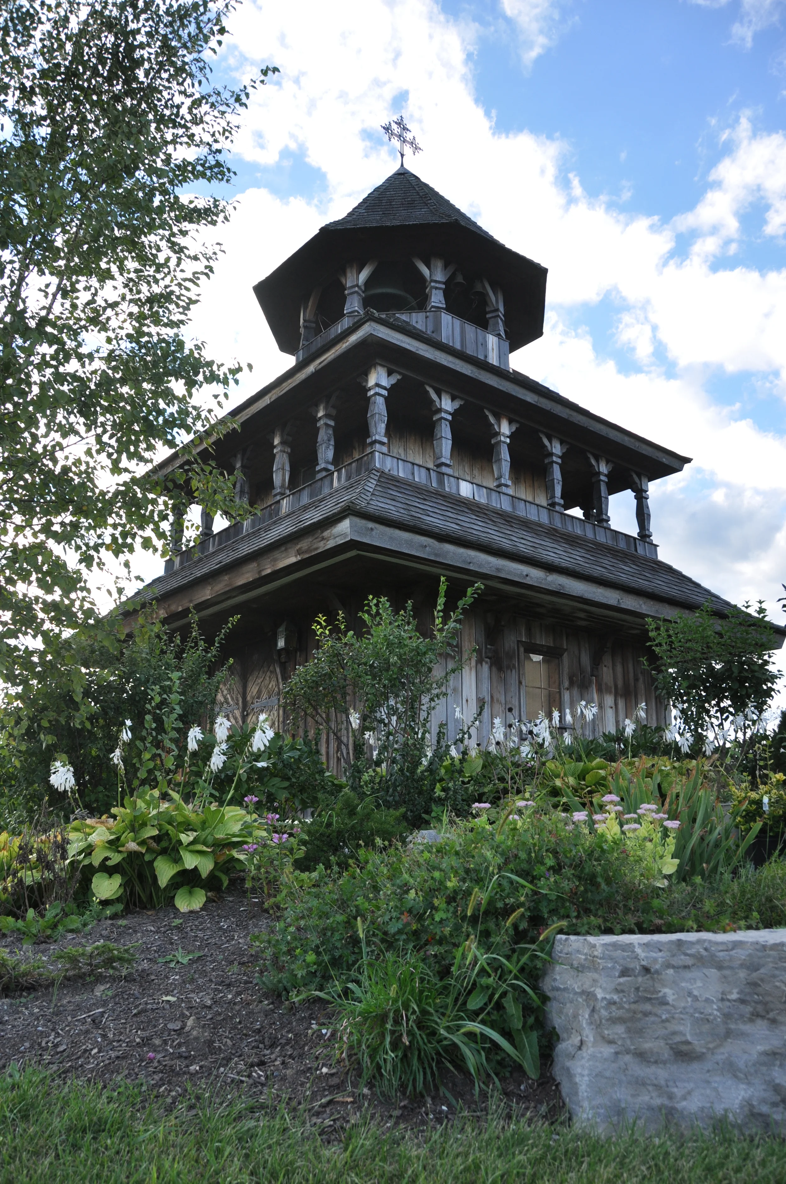 Bohdan Turetsky, who wrote many of the icons on the church’s iconostasis, has designed a charming bell tower in accordance with the traditional wooden architecture of Ukraine. The tower has a 16 foot square base and is approximately 33 feet in height. Like the church, it was built with heavy timbers and sheathed in cedar siding. It will serve as an aural and visible beacon calling us to worship and glorify God, who has blessed us with an abundance of good gifts."